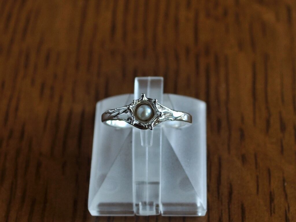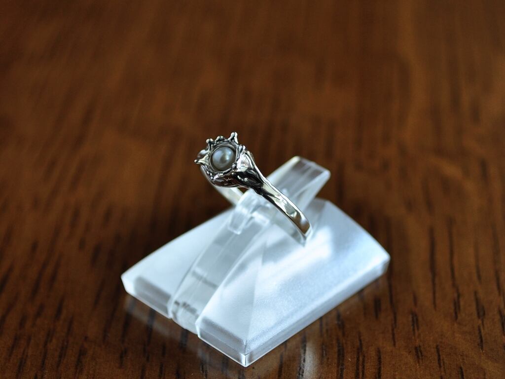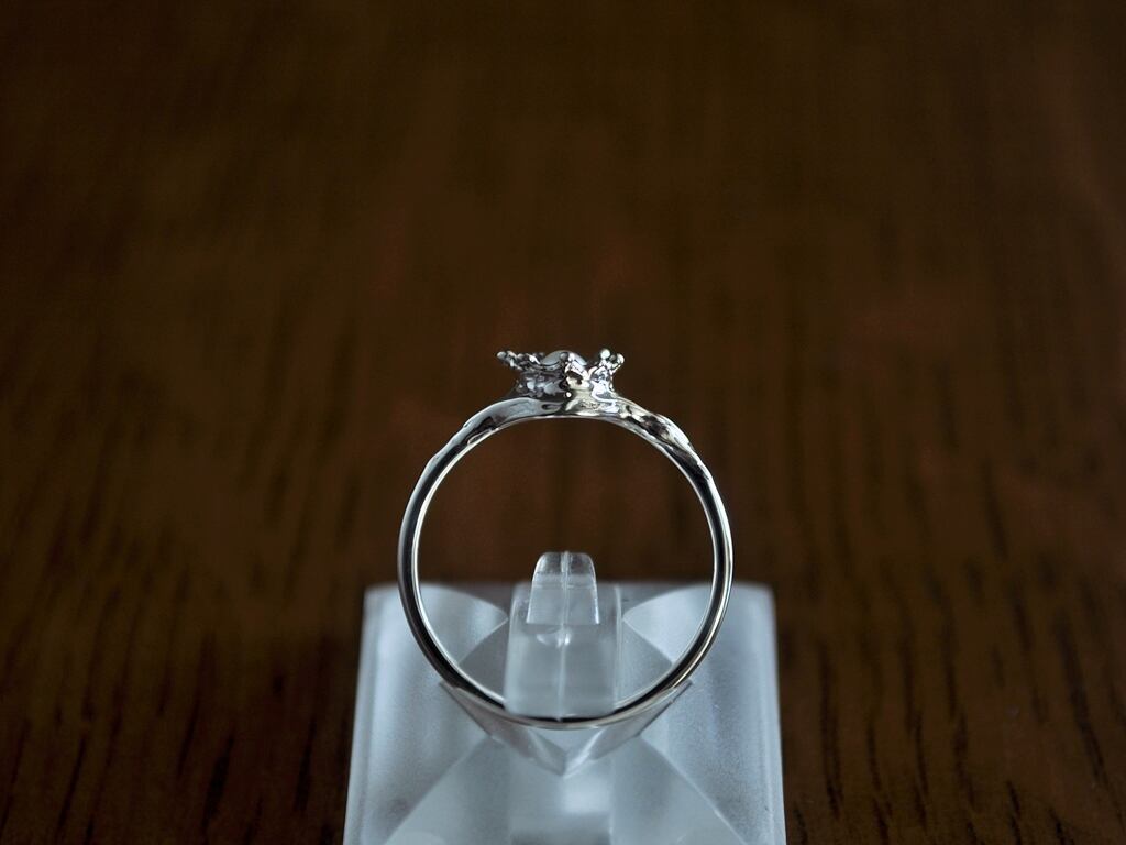 波紋がリングの腕にまで広がり、自然を人工的に表現する不自然を込めています。