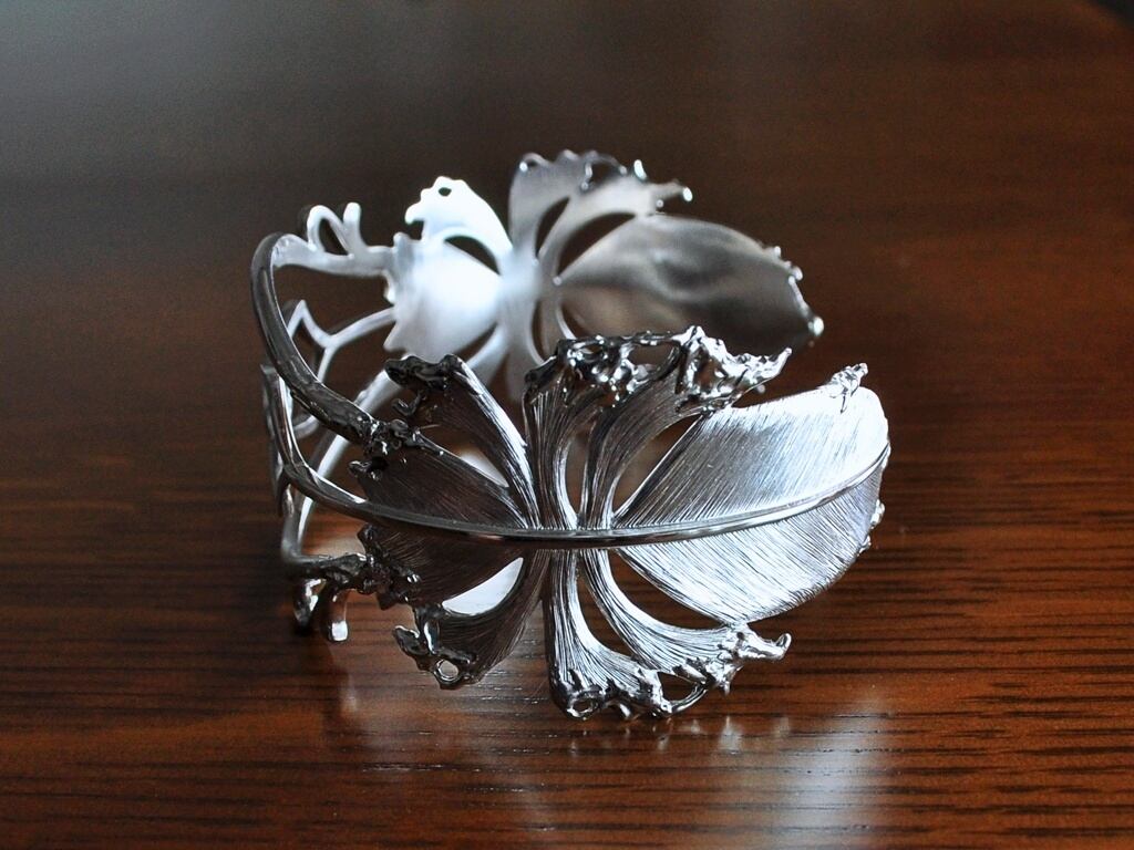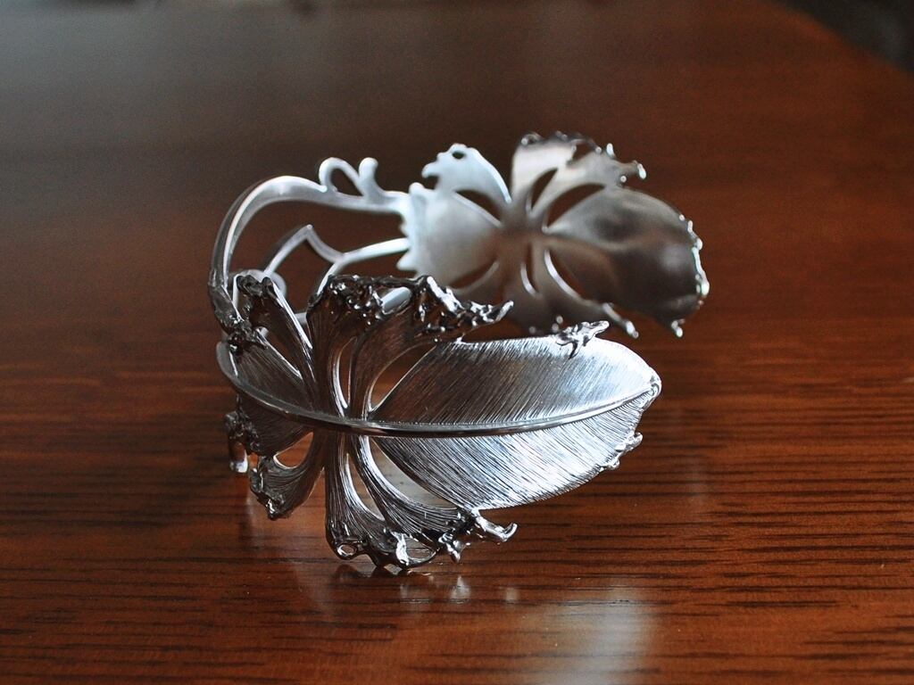 2枚の羽根を合わせたデザインのバングルです。