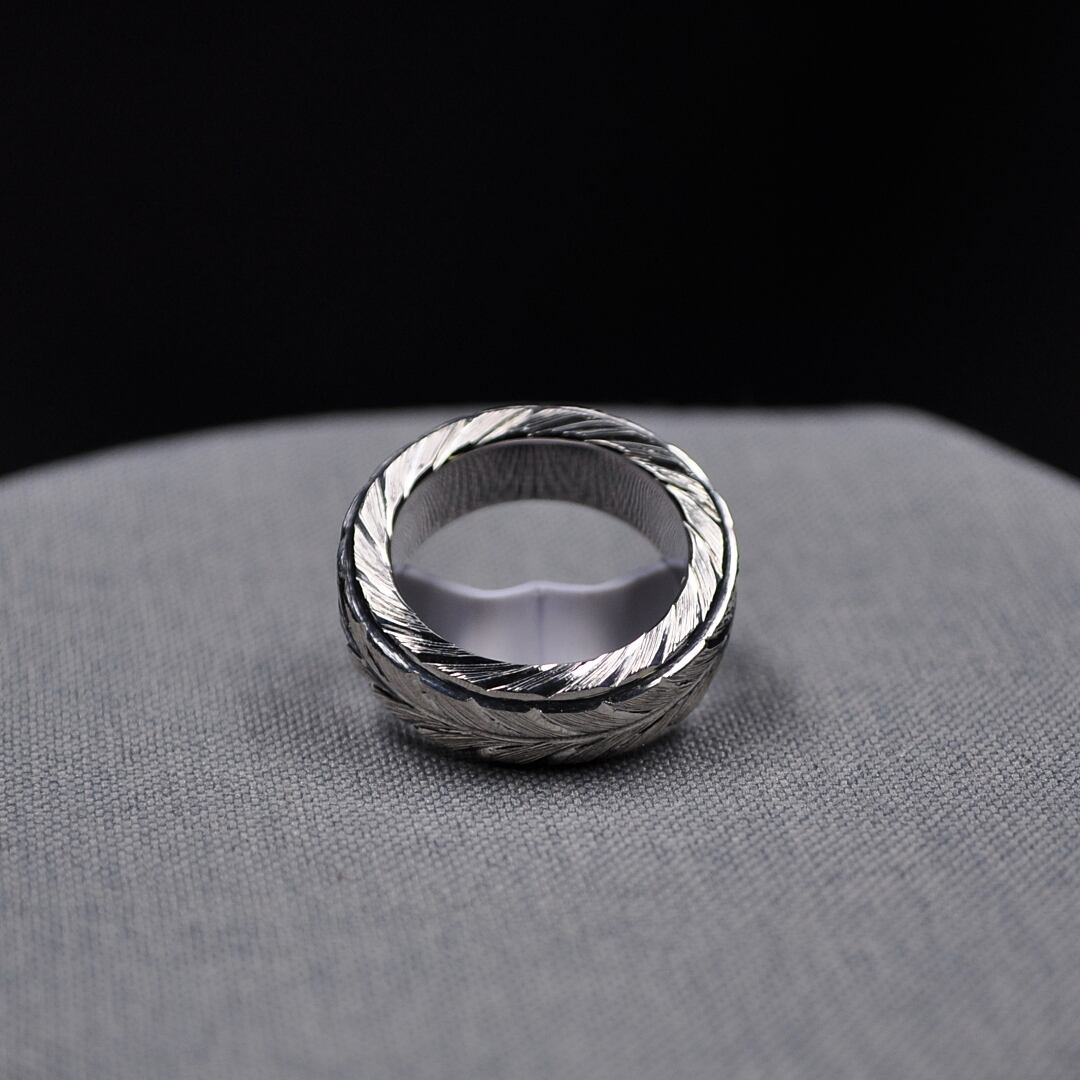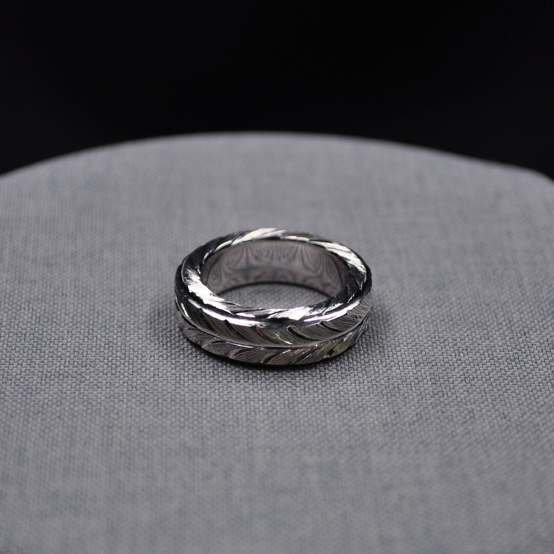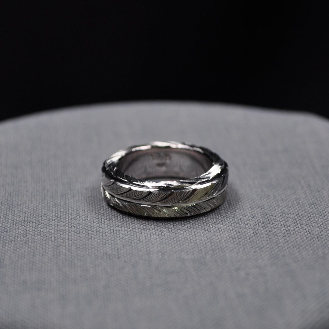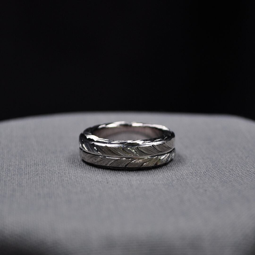 羽根に見立てたデザインをリングの一周にグルっと彫り込んだ